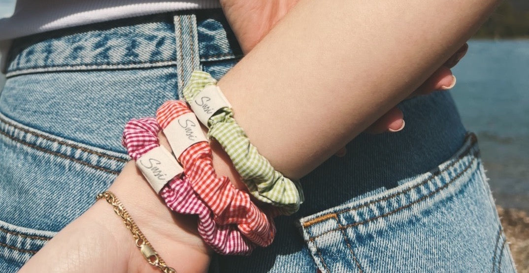 Susi's Haar Accessoires werden aus biologischen Materialien wie GOTS zertifizierter Baumwolle oder Vintage Stoffen, Cellulose Acetat und Gummibändern aus nachwachsenden Naturkautschuken in Deutschland designed.